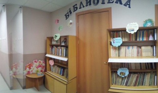 Библиотечный уголок с детской литературой оборудован в холле 1 этажа.